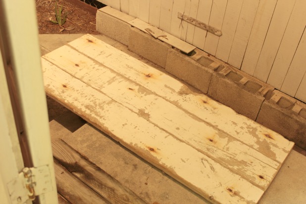 I had just the perfect thing for us … another piece of driftwood. π It started as a 16 foot long board I found at the beach while we were living in Curacao … last year I cut it down and made it into a desktop. After a quick chop down to size I had the perfect backdrop for my easy little driftwood craft project. (And I’ll take this opportunity to apologize to our neighbors who have no idea I have a blog for whipping out the circular saw after 9pm. My bad.)