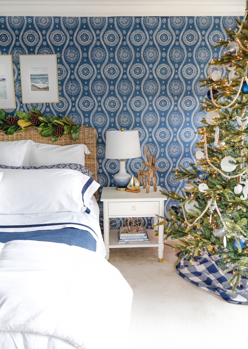Cozy British Colonial Coastal Christmas Bedroom 2018